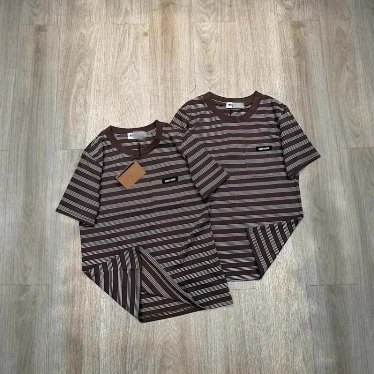 MIUMIU Letter striped round neck short-sleeved T-shirt loose layered pure cotton unisex top pocket-2584